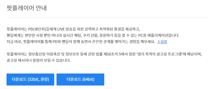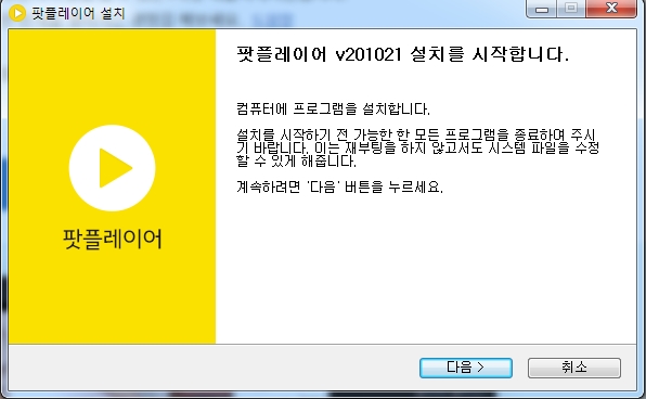 또 하나의 PC로 카카오티비 보는법 중 하나는 팟플레이어 다운입니다. 팟플레이어 다운 받을 때 한국어를 선택하면 바로 PC에 설치되고 이를 이용해서 카카오티비 볼 수 있습니다.