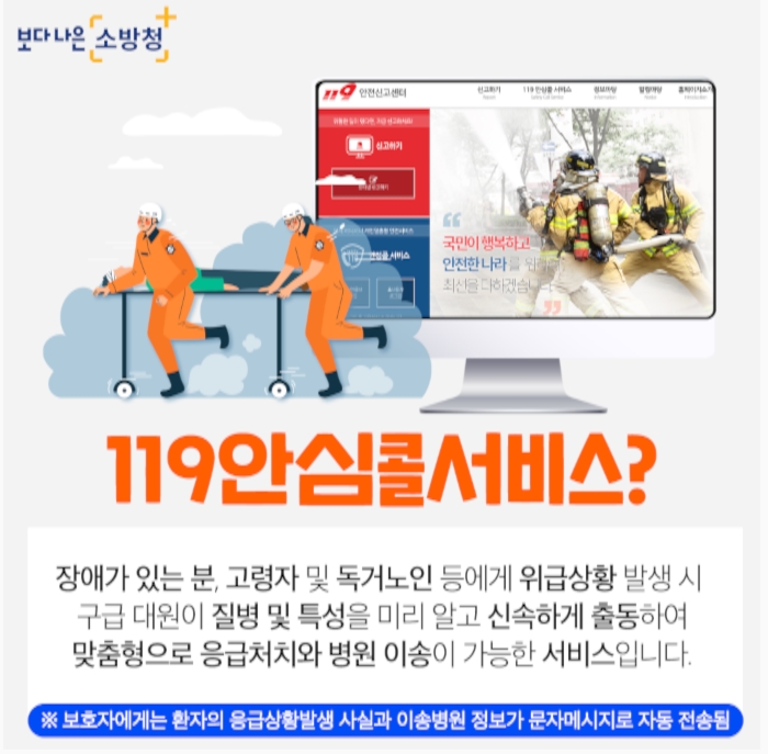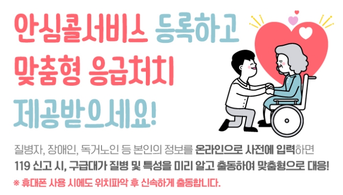 서비스에 미리 정보를 등록해 놓는 것을 말합니다. 그렇다고 모든 국민이 다 등록하는 것은 아니라 독거노인, 고령자, 장애가 있는 분들에게 어떤 위급한 상황이 생겼을 경우 119로 신고를 하면 구급대원이 미리 정보가 입력되어 있는 것을 바탕으로 신속하게 대응할 수 있게 되는 서비스입니다.