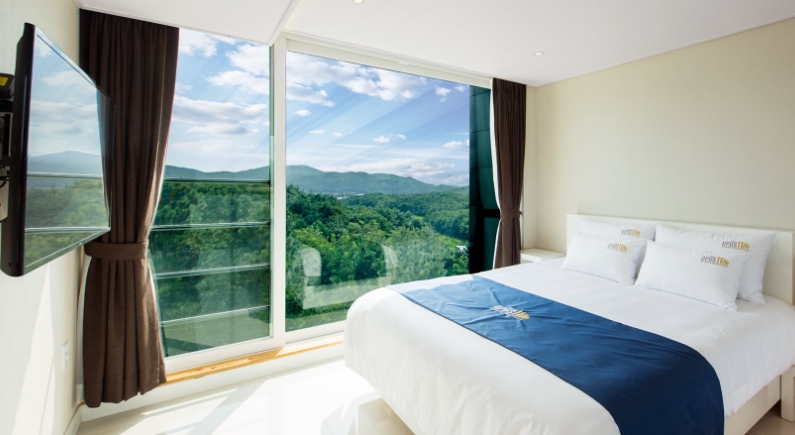 코모힐 객실과 코모밸리는 커플에 최적화된 공간 구성이 돋보이는 객실이며 루프탑 수양장에서의 오션뷰가 일품입니다. 기준 2명에 최대 4명, 퀸침대 1개가 마련되어 있습니다.