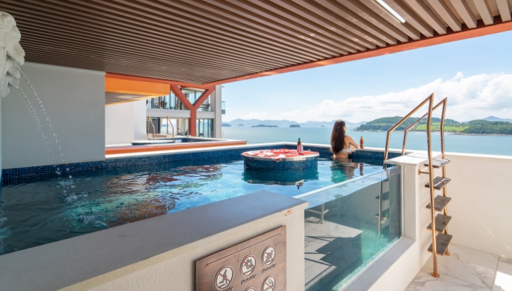피피테라스 객실은 수족관을 연상시키는 독특한 수영장과 산토리니풍의 모던함, 프라이빗한 수영장을 즐길 수 있습니다. 피피 풀빌라 객실은 프라이빗풀과 목재로 연결되어 있는 화이트풍 단지구성으로 이루어진 풀빌라 펜션 입니다.