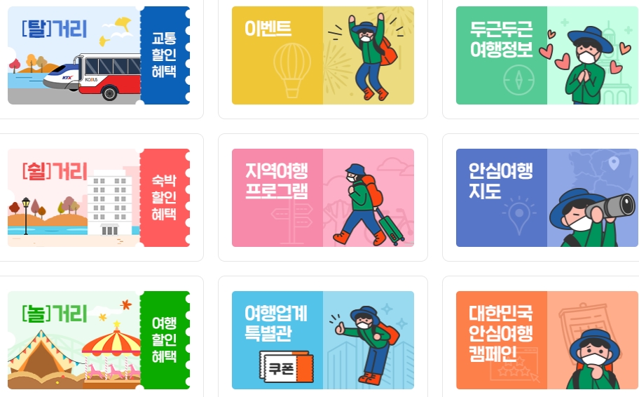 원래 정부에서 이야기하는 여행주간은 봄과 가을 2주간이었습니다만, 올해는 11월 8일부터 30일까지를 2021 여행가는 달로 운영합니다. 이로 고속철도와 고속버시, 숙박 등에서 특별한 할인 혜택을 받을 수 있습니다.