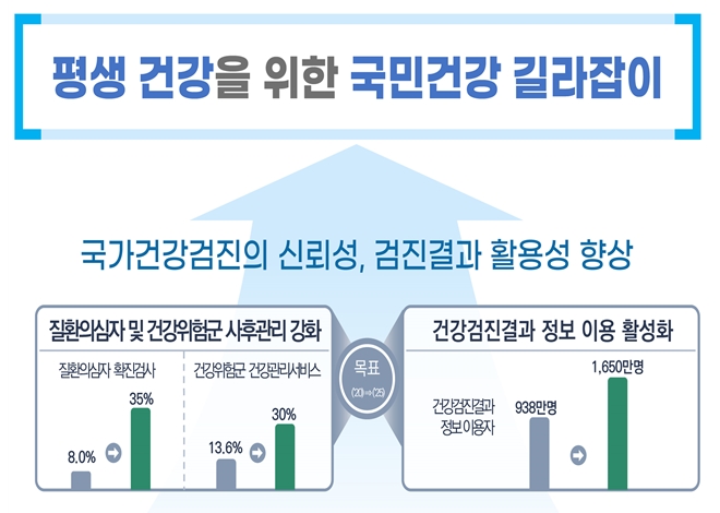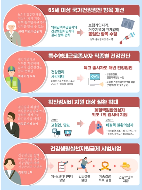 즉 앞으로는 일률적인 국가건강검진 아니라 수검자의 상황과 연령대 등에 맞춘 수검자 맞춤형 건강관리 항목이 추가되고 개선될 예정입니다.
