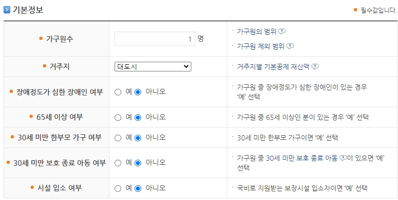 기초생활수급자 주거급여 자격요건 : 기준중위소득 45%