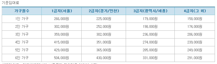 기초생활수급자 주거급여 기준임대료는 서울1급지, 경기/인천의 2급지, 광역시와 세종시의 3급지, 그 외 4급지로 구분되어 있습니다.