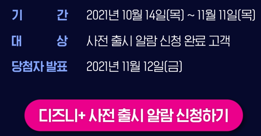 현재 LG유플러스에서는 디즈니플러스 사전 출시 알람 신청하면 77인치 TV, LG스탠바이미, 시네빔, 스타벅스상품권 등에 당첨될 수도 있습니다. 그리고 유플러스 매장을 방문해 단골고객 등록하면 디즈니 폰 스트랩을 받을 수도 있습니다. 또한 매장방문 후 SNS인증하면 디즈니 굿즈셋트, 그리고 사전출시 알람 및 매장예약고객에게는 더 큰 혜택을 준다고 합니다.