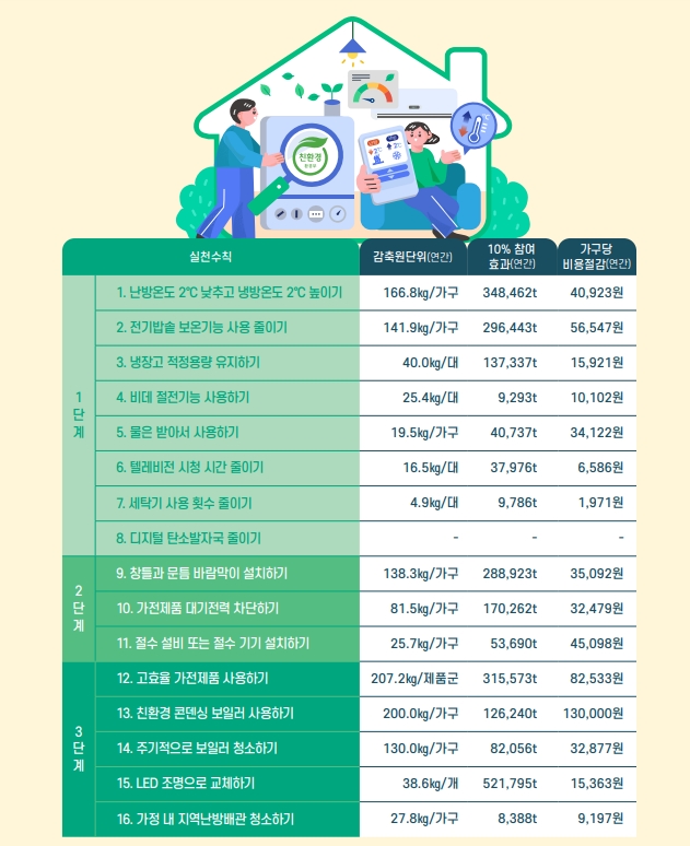 이 외에도 탄소 중립 생활을 위한 여러가지 실천항목이 있습니다. 대중교통 이용과 나무심기, 난방온도와 냉방온도를 적절하게 유지하며 최소화된 포장재, 중고제품 나눔, 분리배출, 친환경 운전 등등의 여러 실천 방법들이 있습니다.