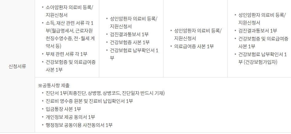 보건소 암환자 의료비 지원 범위 및 지원 항목
