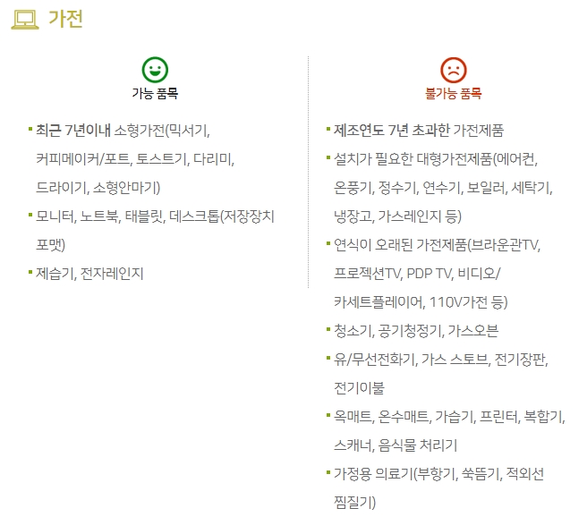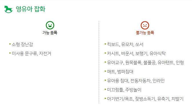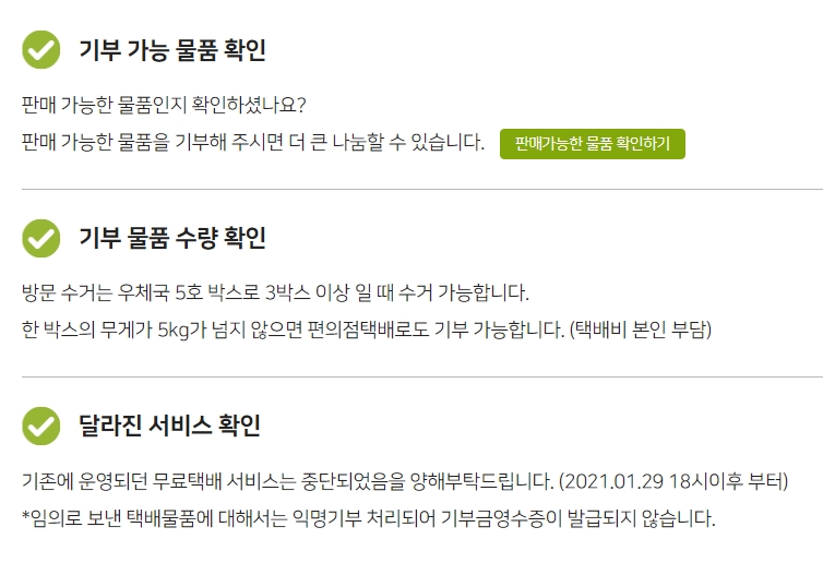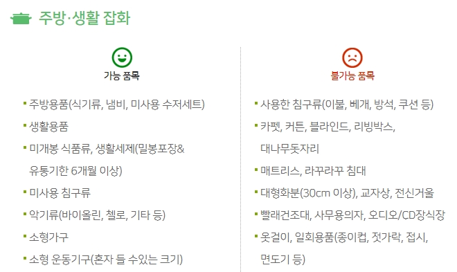 가장 먼저 해야 할, 확인해야 할 일은 먼저 내가 기부하고자 하는 품목이 판매 가능한 것인지 알아보아야 합니다. 뉴스에서 나왔던 이야기도 판매 불가능한, 쓰레기 같은 품목을 기부하는 사람이 많다는 것이었습니다.