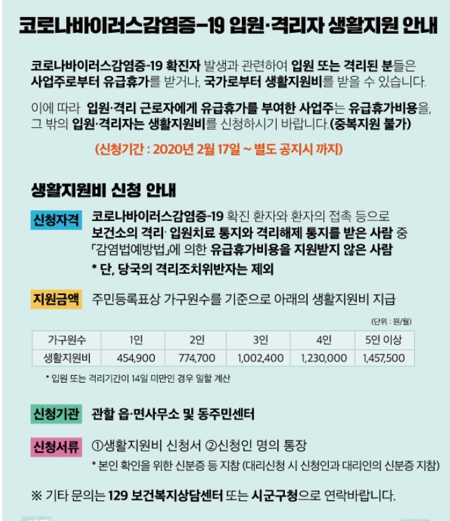 코로나 확진자 자가격리 지원금