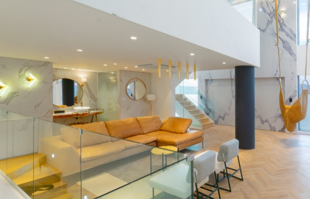 스위트룸은 기준 4명에 최대 8명, 퀸 침대 2개, 침실층과 거실층 그리고 주방층이 분리되어 있는 럭셔리 스위트룸입니다. 여수 슈가브리움 풀빌라 펜션에서 가장 규모가 큰 단독 루프탑 수영장을 보유하고 있습니다.