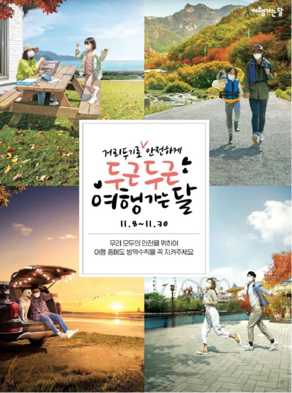 물론 11월 여행가는 달 이라고 해도 관광버스 등을 이용해서 한 버스에 40명씩 타고 관광을 가는 일은 아직은 없겠지만 그래도 가족과 친구와 함께 소수인원의 여행은 갈 수 있을 것 같습니다. 그리고 정부에서도 이제 관광업계 회복과 안전한 여행을 일상화할 수 있도록 여행주간을 발표했습니다.