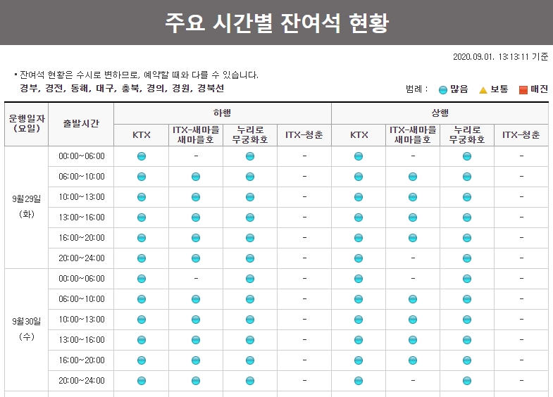 이렇게 2020년 추석기차표를 양일간에 걸쳐 오후 1시까지 예매 하고 난 후 9월9일 수요일 오후 3시부터는 잔여석을 판매하게 됩니다.